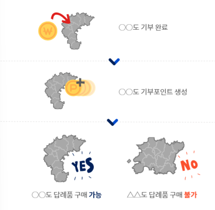 원하시는 지역에 기부를 하시면 그 지역의 기부포인트를 받을 수 있고 포인트를 사용하여 지역 답례품을 고를 수 있습니다.