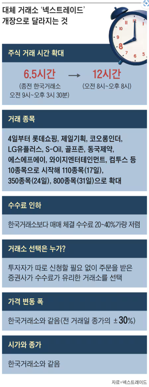 - 넥스트레이드 거래 시간: 오전 8시 ~ 오후 8시 (총 12시간 운영)
