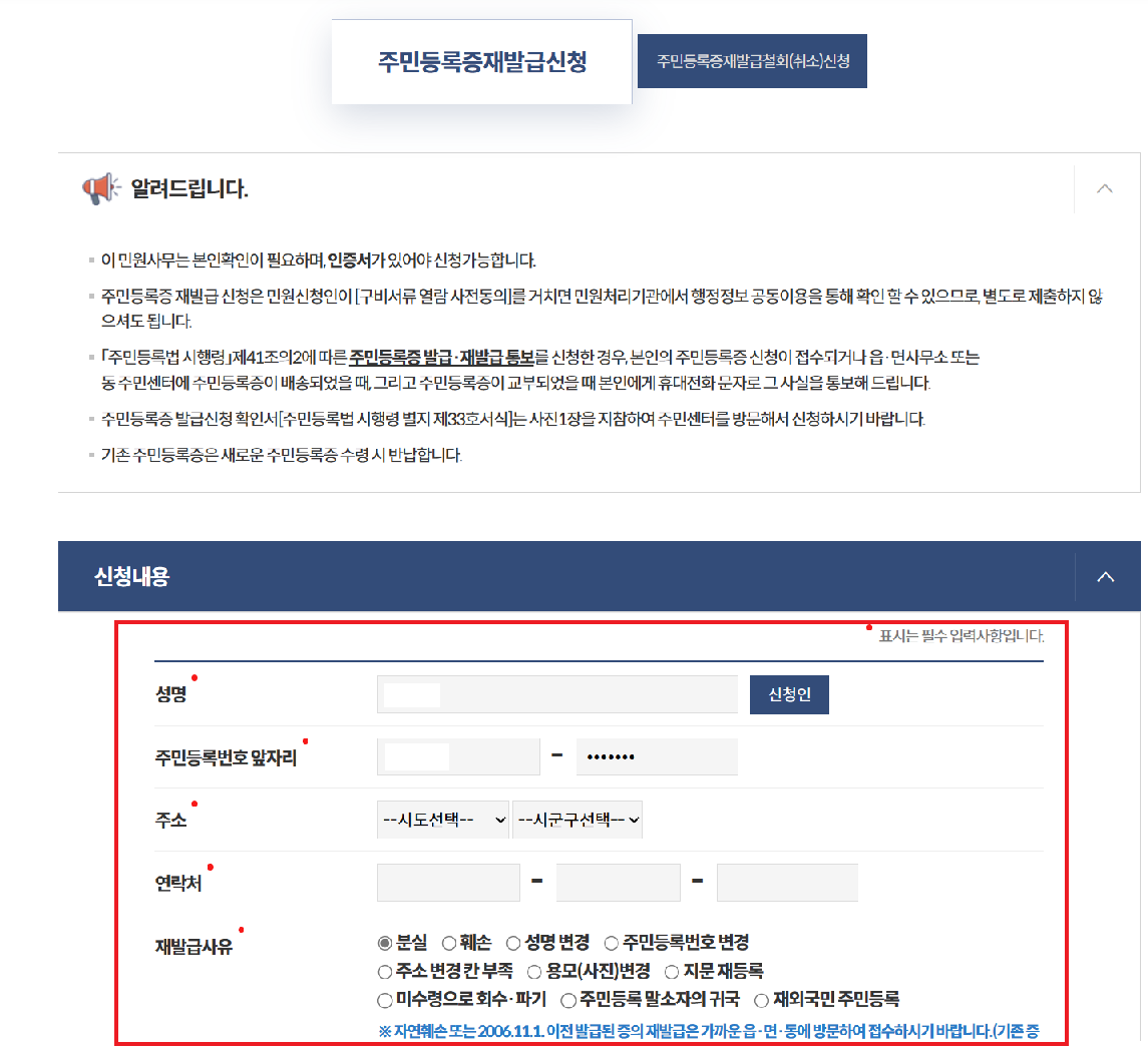 주민등록증 재발급 신청 방법