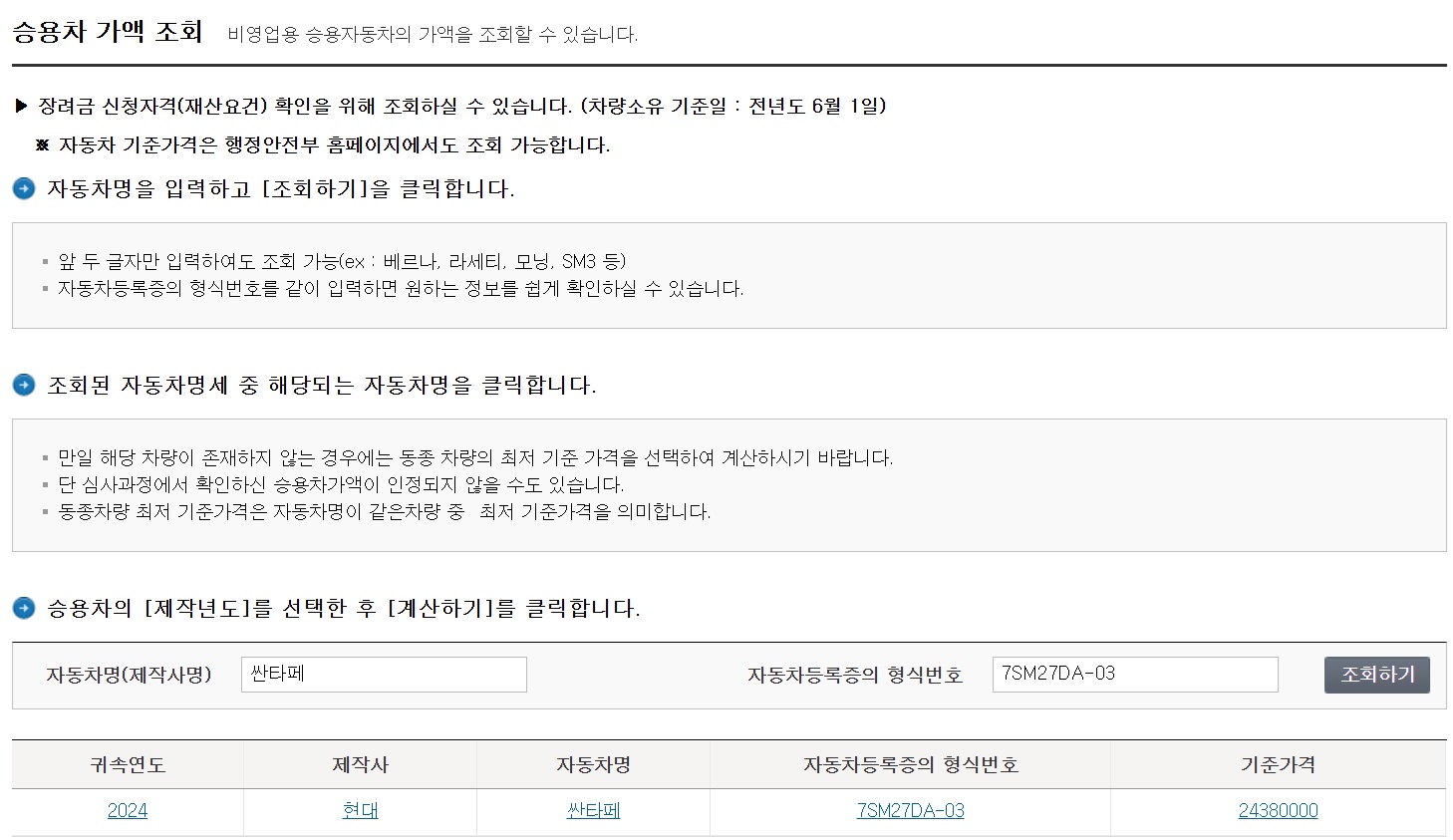 중고차량의 기준가격은 국세청 홈택스에서 확인하실 수 있습니다.