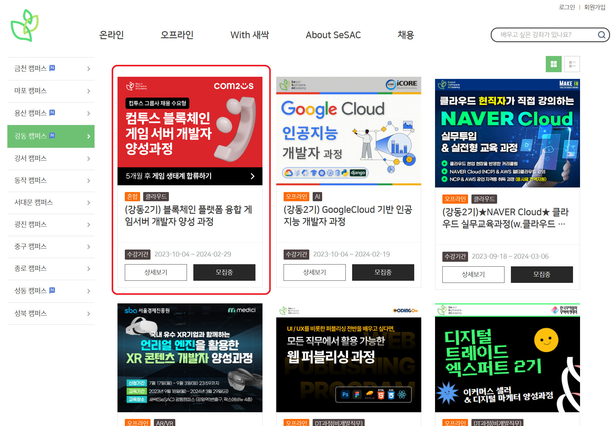 1) 청년취업사관학교 에 가입 후 오프라인 / 캠퍼스 지역 선택