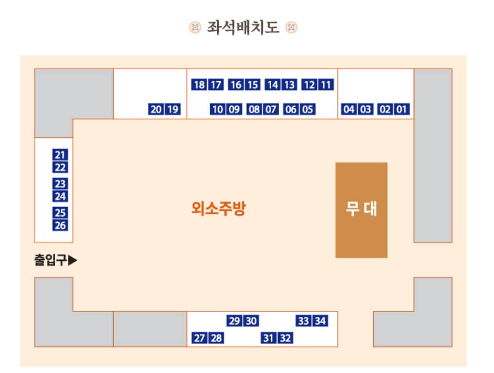 좌석배치도는 위의 그림과 같은데 주말이나 공휴일은 예약 경쟁이 치열하기 때문에 좌석을 고르시기보단 우선 남은 자리를 우선 예약하시는 것을 추천드립니다.