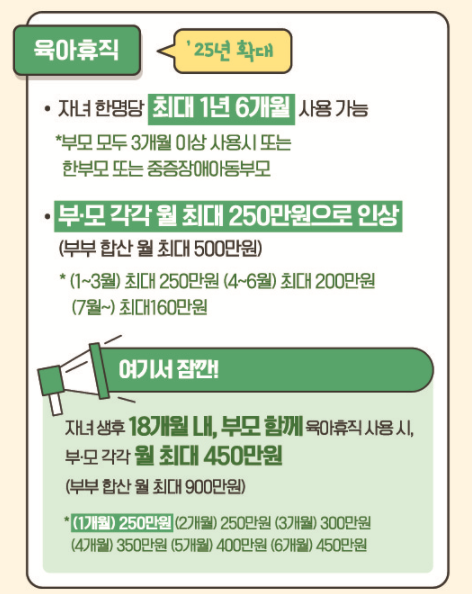 2025년 개선된 육아지원 제도에 대해서 알기 쉽게 설명드리겠습니다. 핵심 내용은 아래와 같습니다.