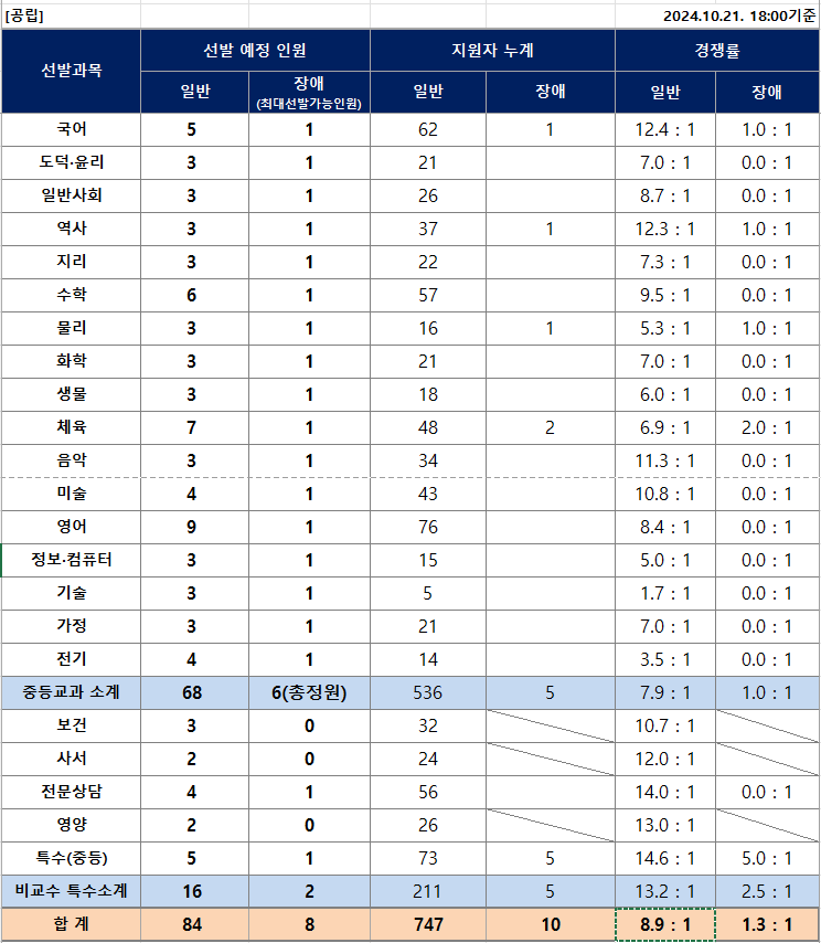 2025학년도 중등 임용고시 티오 및 최종 경쟁률이 확정되었습니다. 이에 대해서 전국 17개 시도 교육청의 '공립 일반 모집' 기준으로 정확하게 말씀드리도록 하겠습니다.